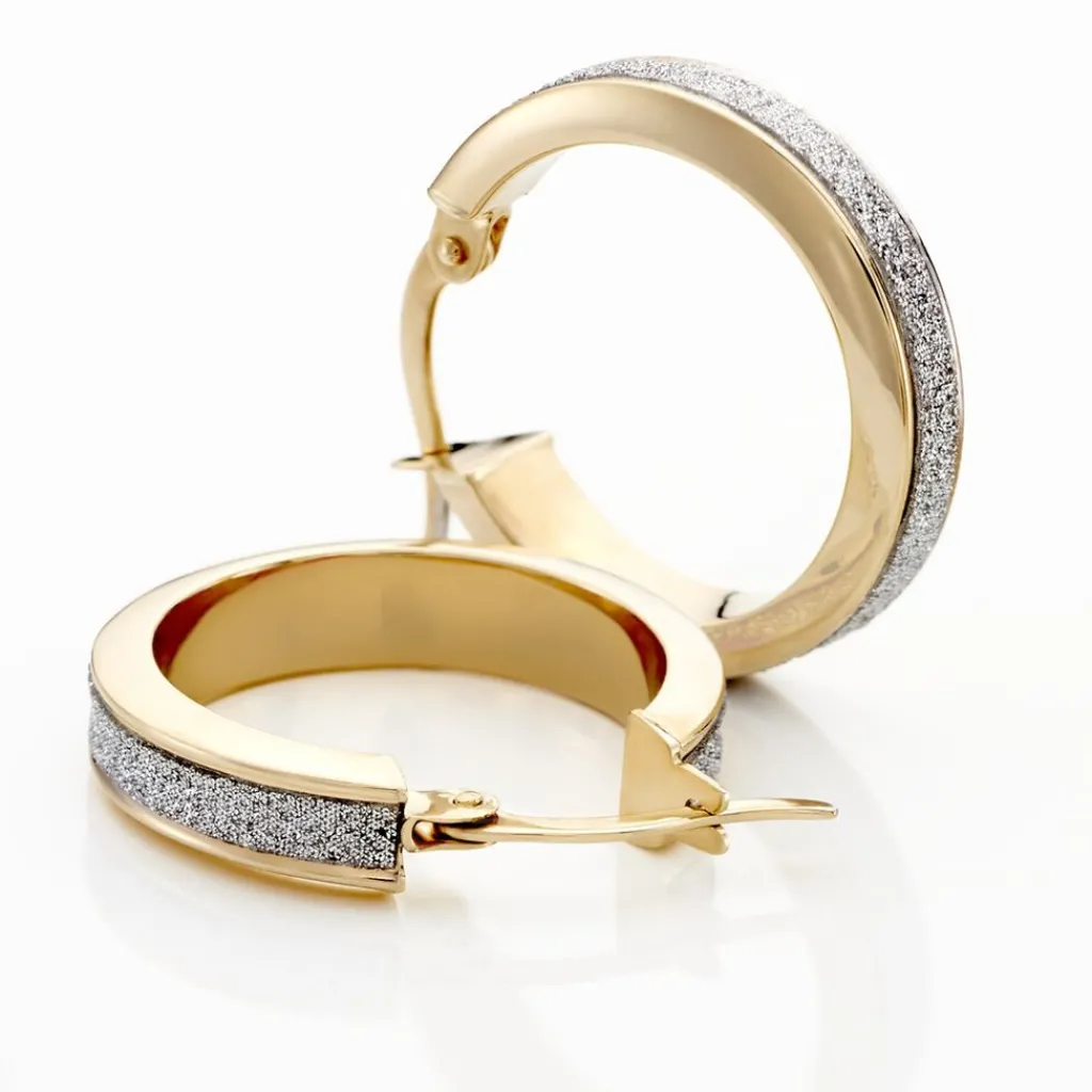 Créoles Or Jaune 375/1000 Fil Carré épaisseur 4mm Glitter Diamètre 15mm