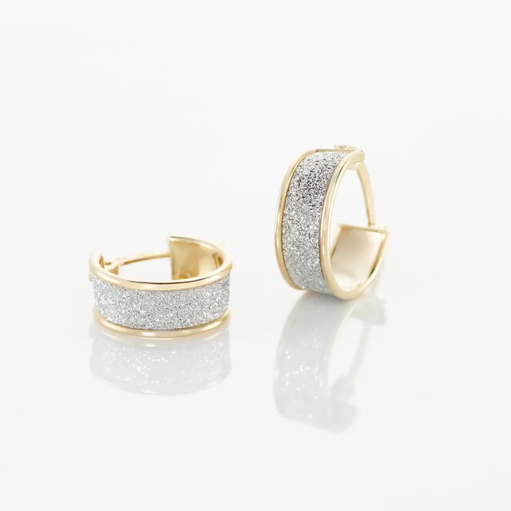 Créoles Or Jaune 375/1000 Fil Plat Glitter épaisseur 5mm Diamètre 10mm