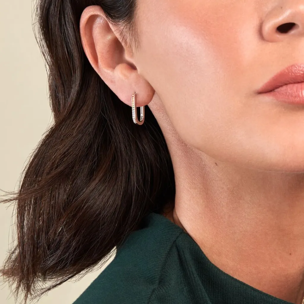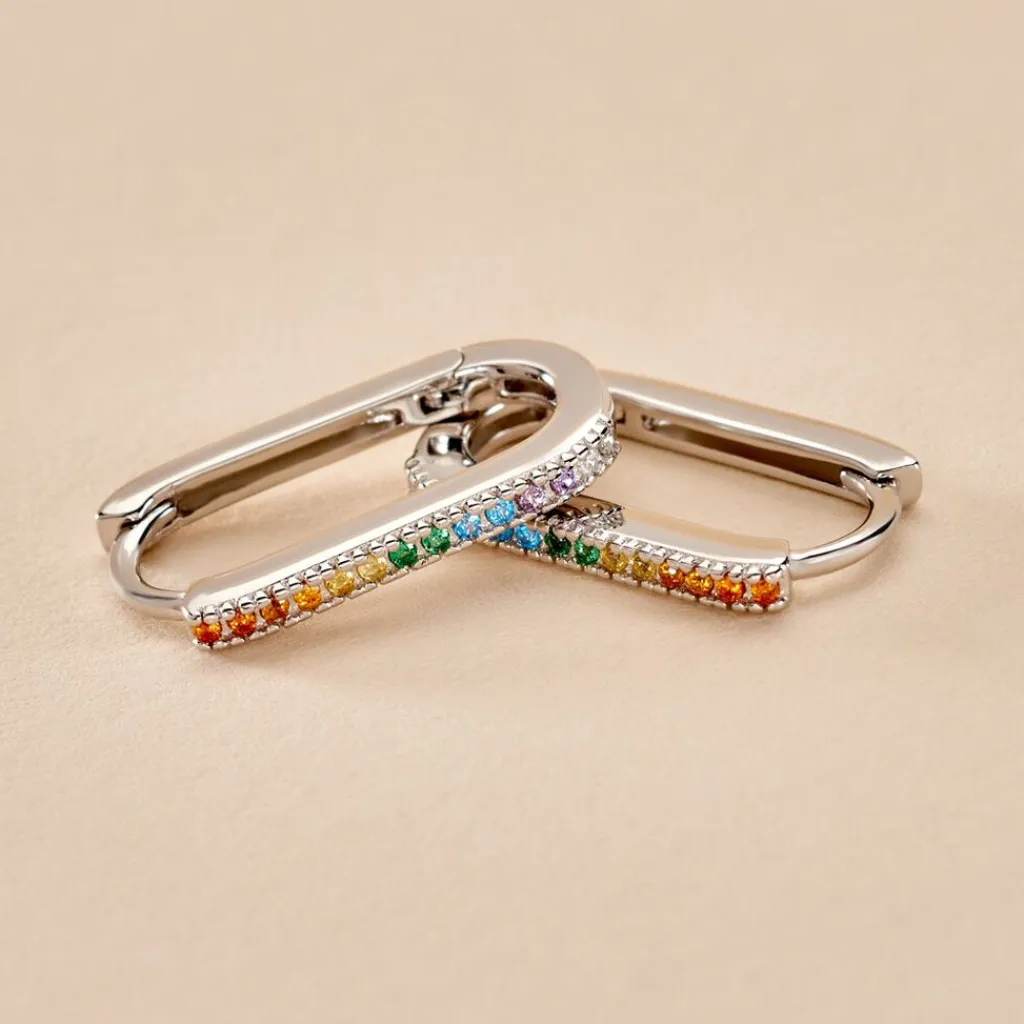 Créoles Rectangulaires Argent Blanc 925/1000 Oxydes De Zirconium Multicolore 18mm
