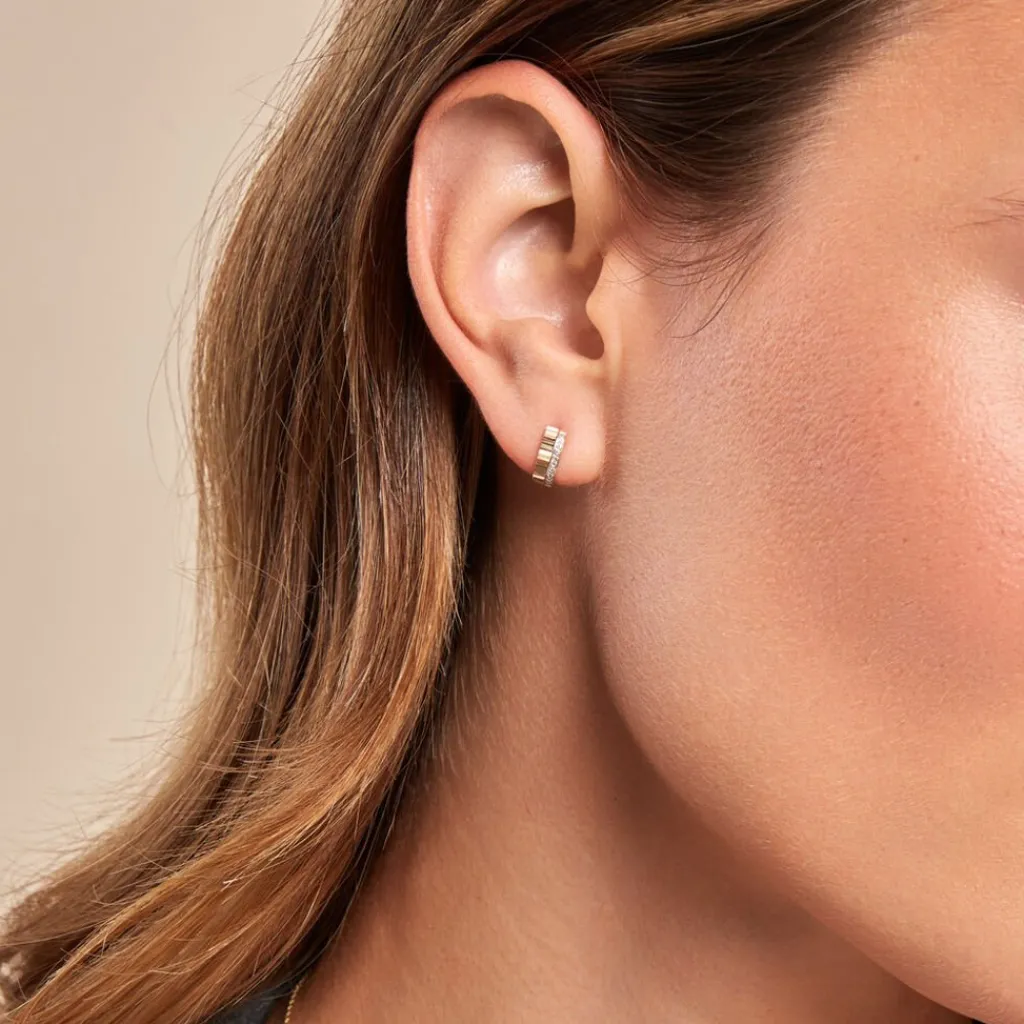 Creoles Or Jaune 375/1000 Rondes Diamantees Pavage Diamants Diametre 10mm
