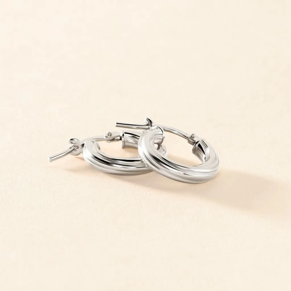 Créoles Argent Blanc 925/1000 Striées Largeur 3mm Diamètre 8mm