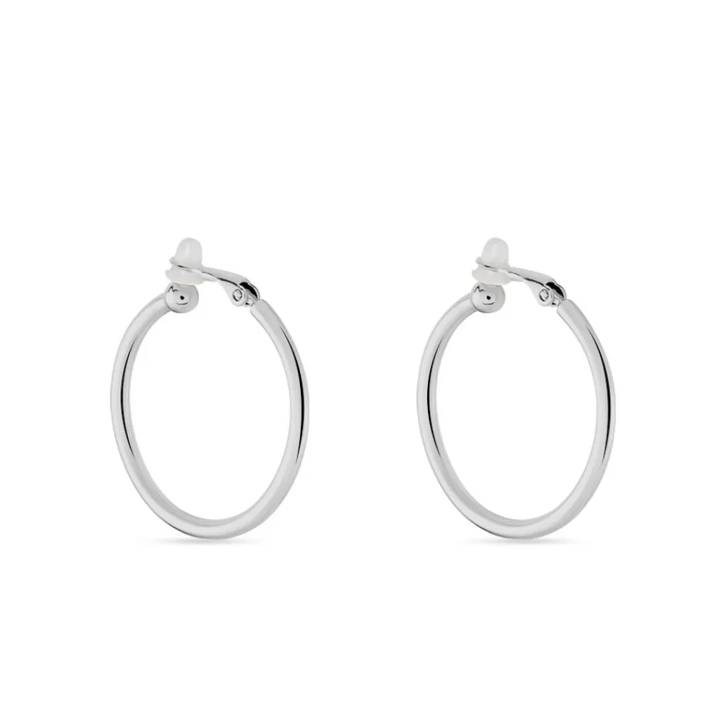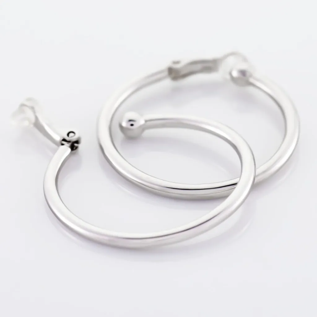 Creoles Argent Blanc 925/1000 Fils Ronds Largeur 13mm Diametre 22mm Fermeture Clips