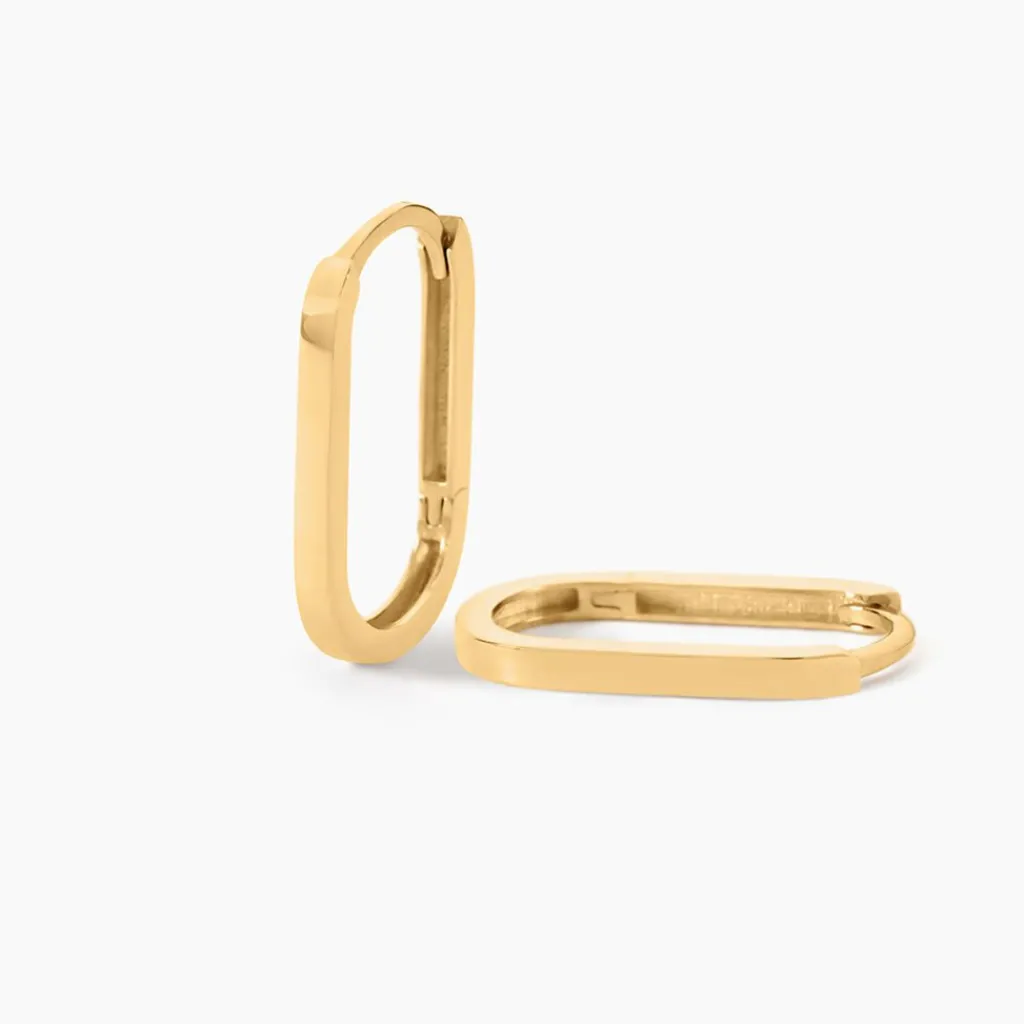Creoles Or Jaune 750/1000 Fil Carre Lisse Ovales 16Mm