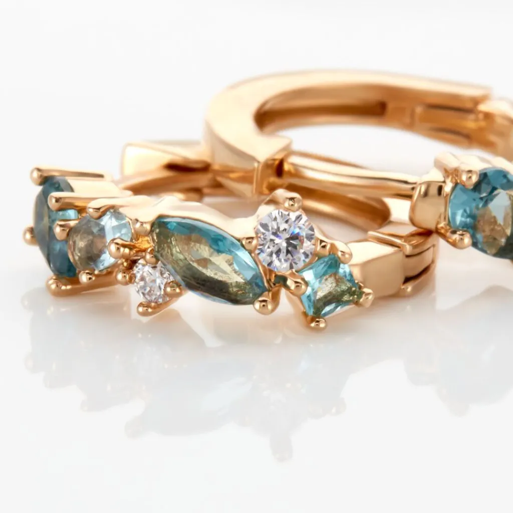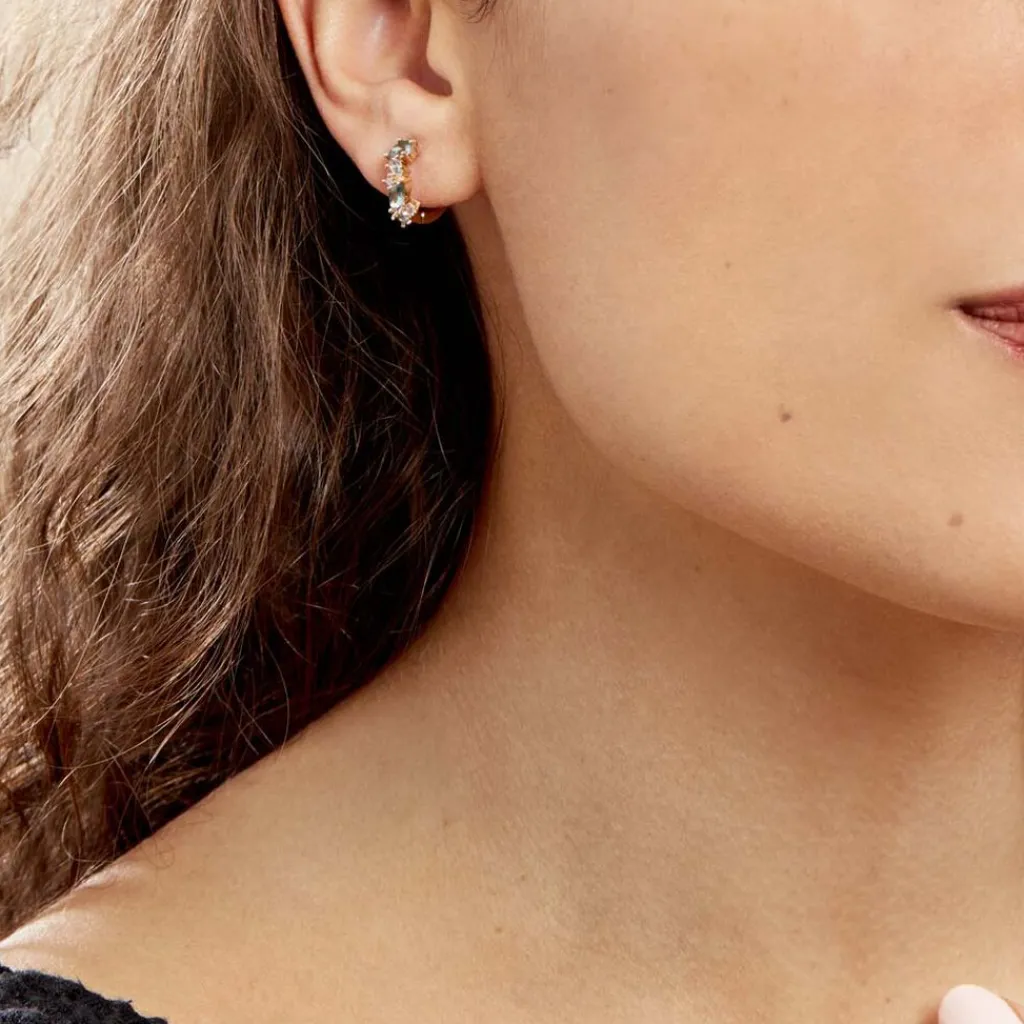 Creoles Plaque Or Jaune Multi Pierres Artificielles Bleues Diametre 15mm 1.5mm