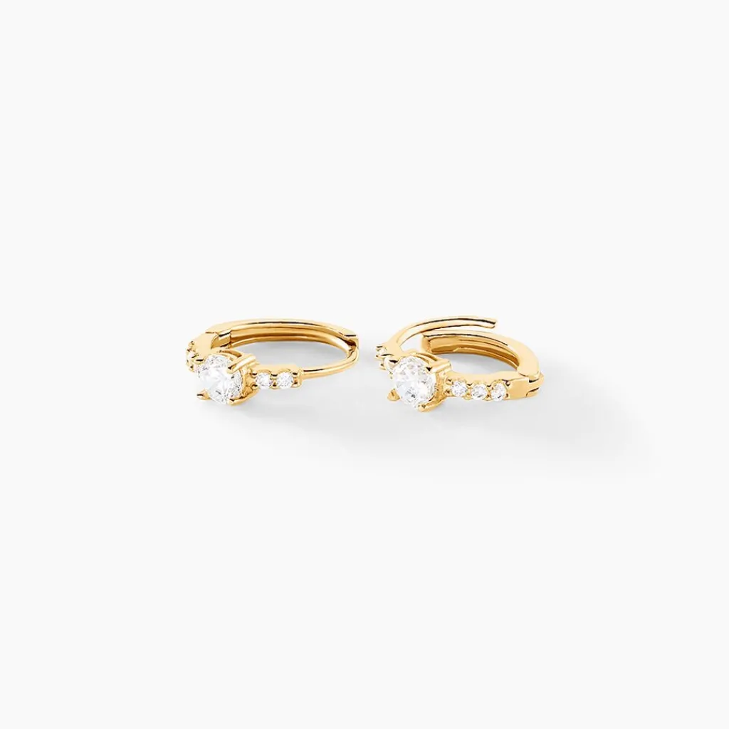 Creoles Or Jaune 375/1000 Oxydes De Zirconium Ronde Serti Griffes Diametre 10mm