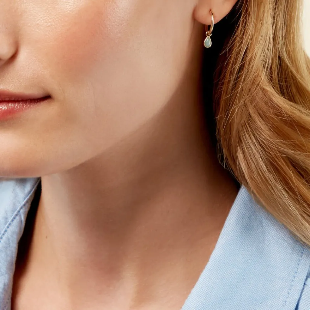 Creoles Or Jaune 375/1000 Pampille Goutte Amazonite Turquoise Fil Rond Diametre 10Mm