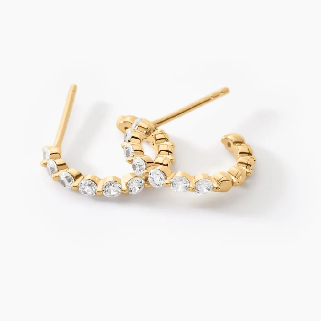 Créoles 3/4 Or Jaune 375/1000 Oxydes De Zirconium Serti Griffes 8.9mm