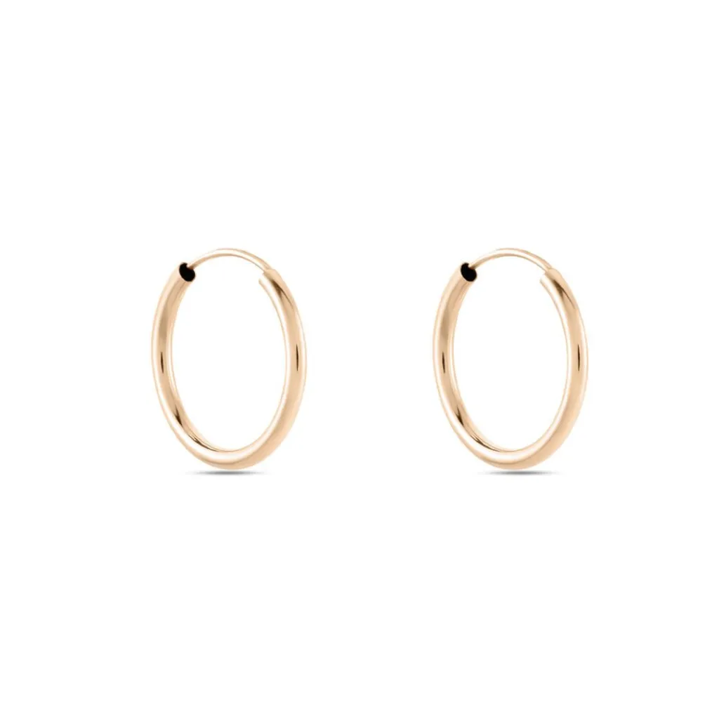 Créoles Or Rose 375/1000 Fil Rond Flexibles Epaisseur 1.6mm Diamètre 15mm