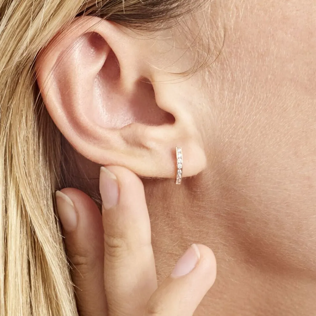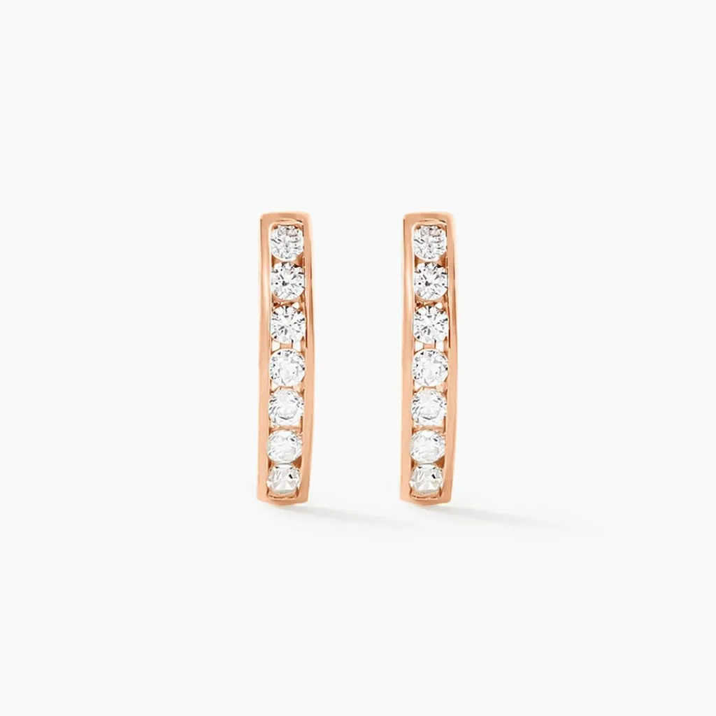 Créoles Or Jaune 375/1000 Demi Cercle Oxydes De Zirconium