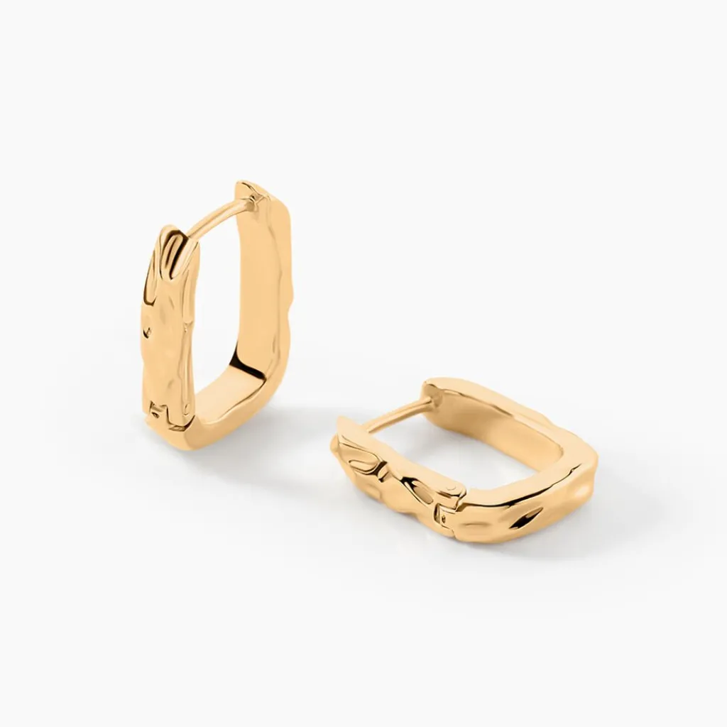 Créoles Rectangles Plaqué Or Jaune Effet Organique Diamètre 18*14Cm