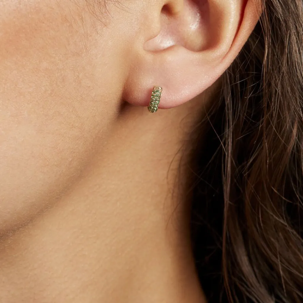 Créoles Plaqué Or Jaune Pavage Oxydes De Zirconium Verts Diamètre 7mm