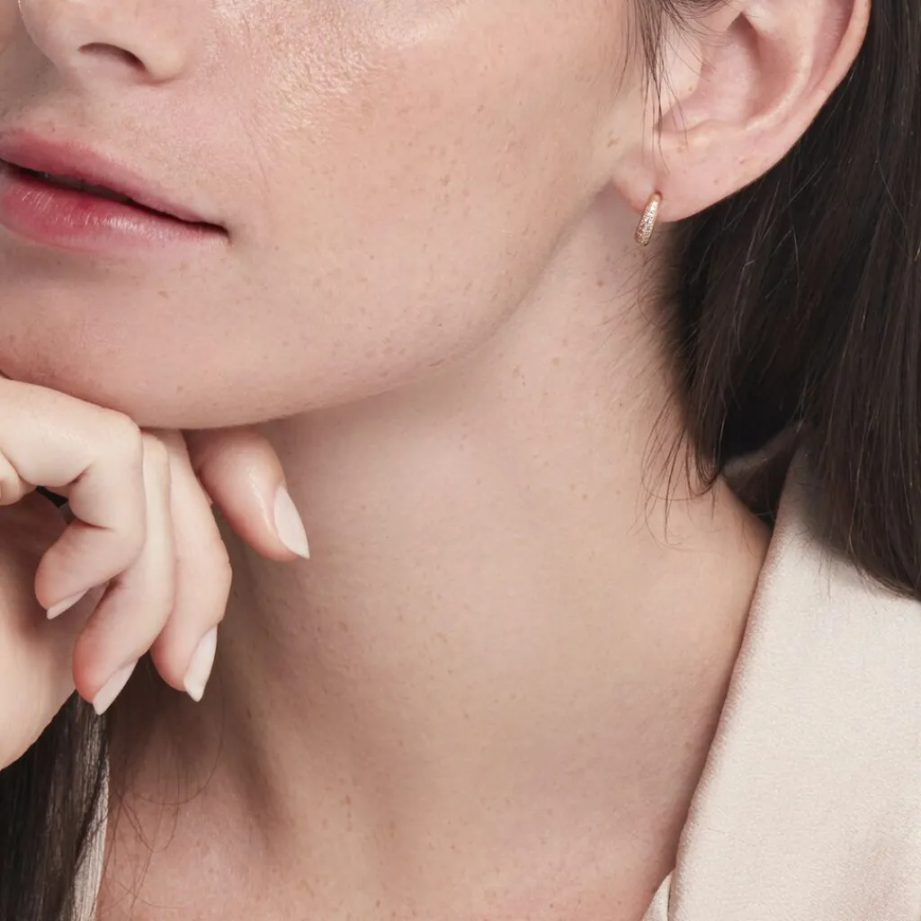 Créoles Plaque Or Pavage Oxydes De Zirconium Diamètre 8mm