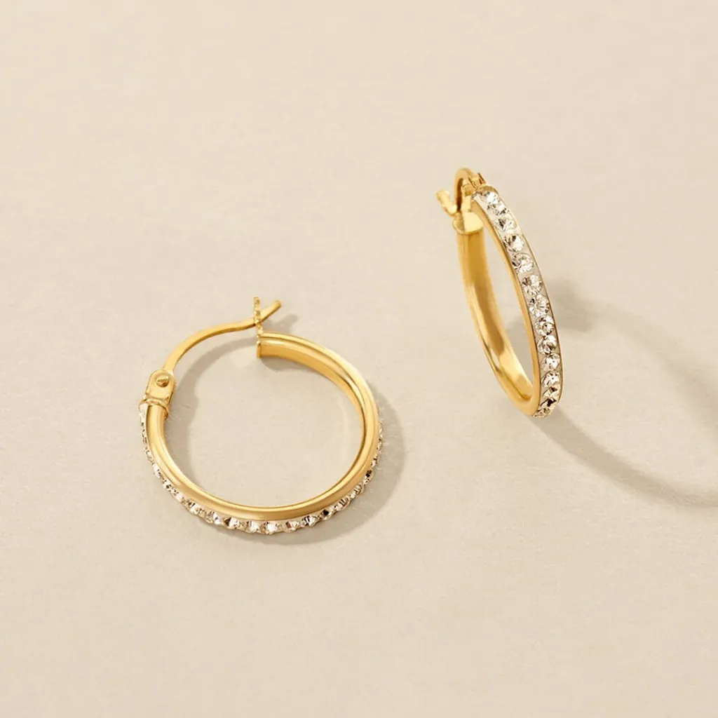 Créoles Or Jaune 375/1000 Fil Carré Strass Largeur 2mm Diamètre 20mm