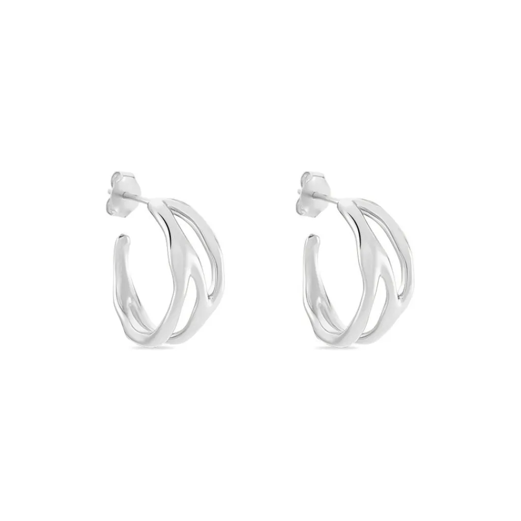 Creoles Argent Blanc 925/1000 Forme Organique Diamètre 16mm
