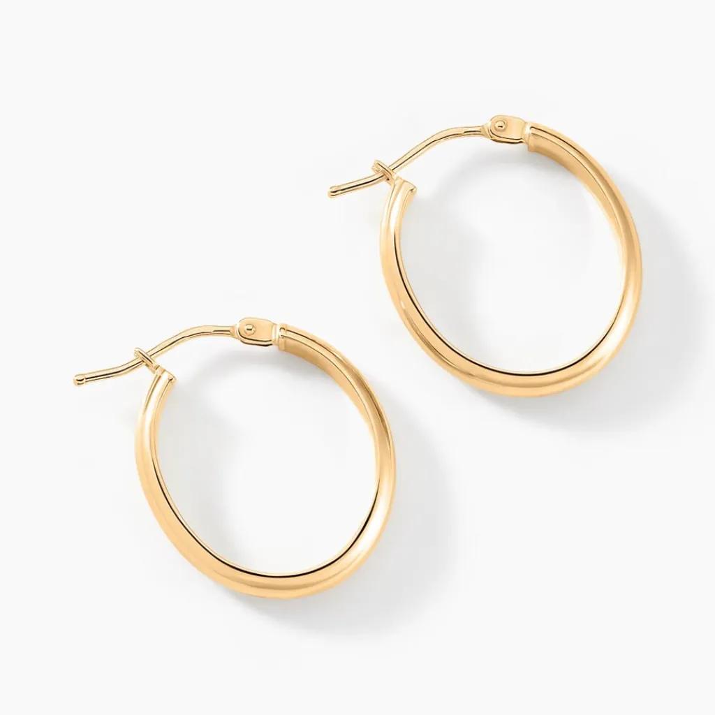 Créoles Or Jaune 375/1000 Ovales Fil Demi Jonc Lisse Largeur 3mm Diamètre 18x14mm