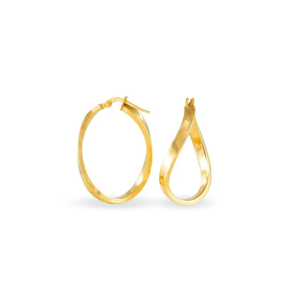 Créoles Or Jaune 375/1000 Ovales Forme Vague Fil Carré Lisse Largeur 3mm Diamètre 27x17mm