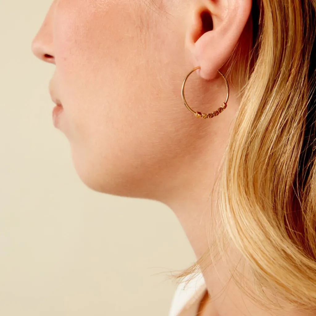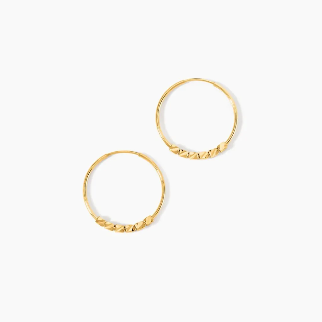 Créoles Or Jaune 375/1000 Flexibles Ornement Carré Largeur De Fil 1Mm Diametre 20Mm