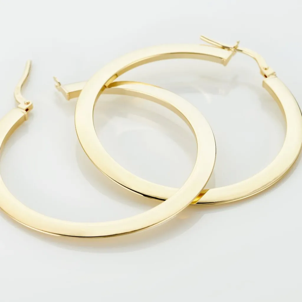 Créoles Or Jaune 375/1000 Fil Triangle Lisse Largeur 0.5mm Diamètre 30mm
