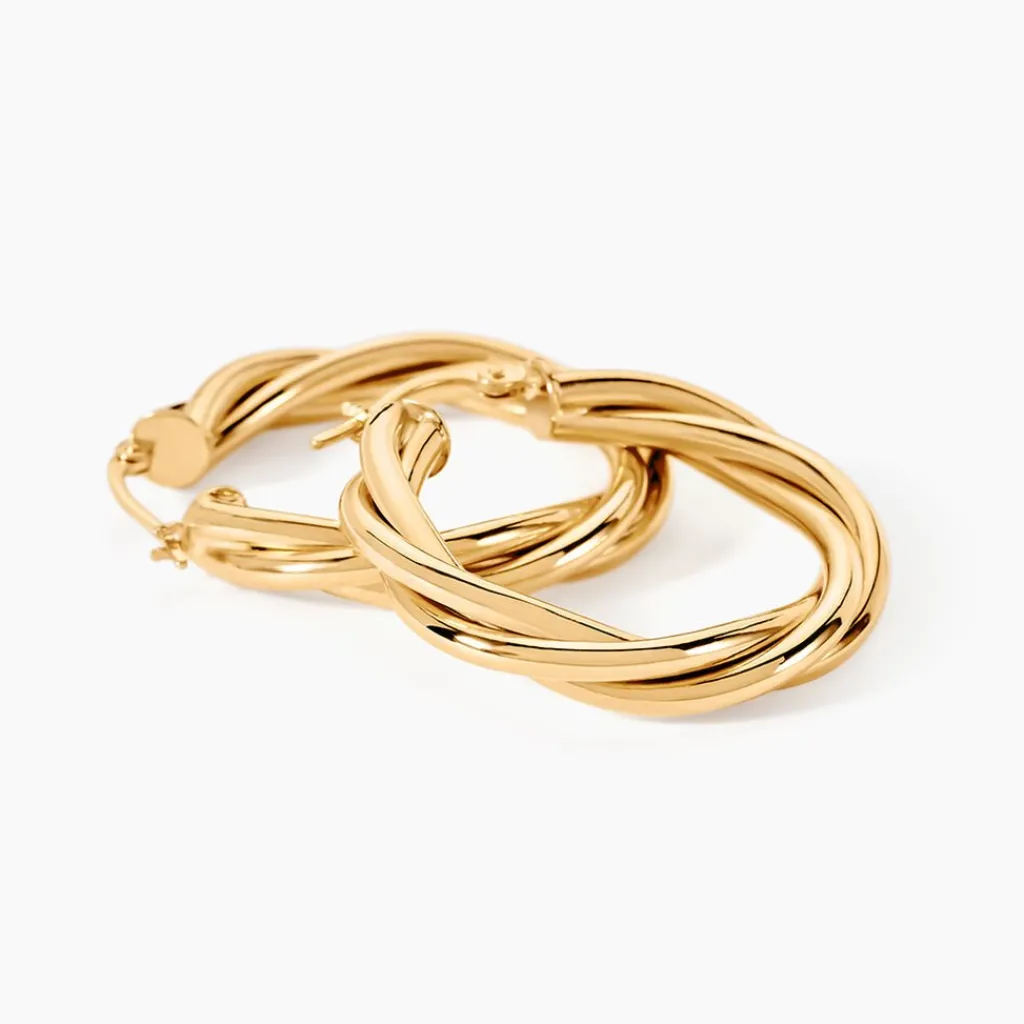 Créoles Or Jaune 750/1000 Torsadée Largeur De Fil 4Mm Diametre 20Mm