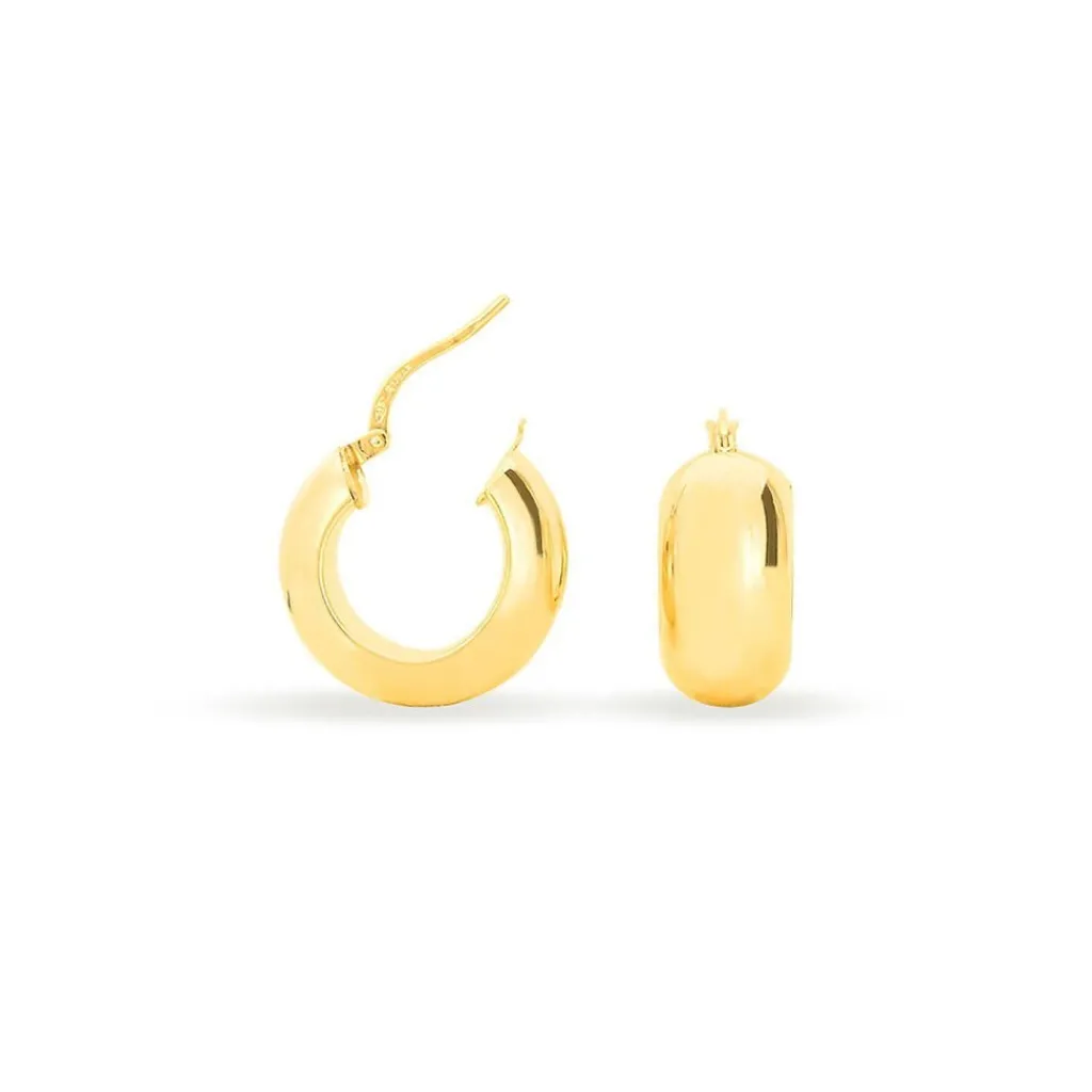 Créoles Or Jaune 375/1000 Fil Demi Jonc Bombe Lisse Largeur 8mm Diamètre 10mm