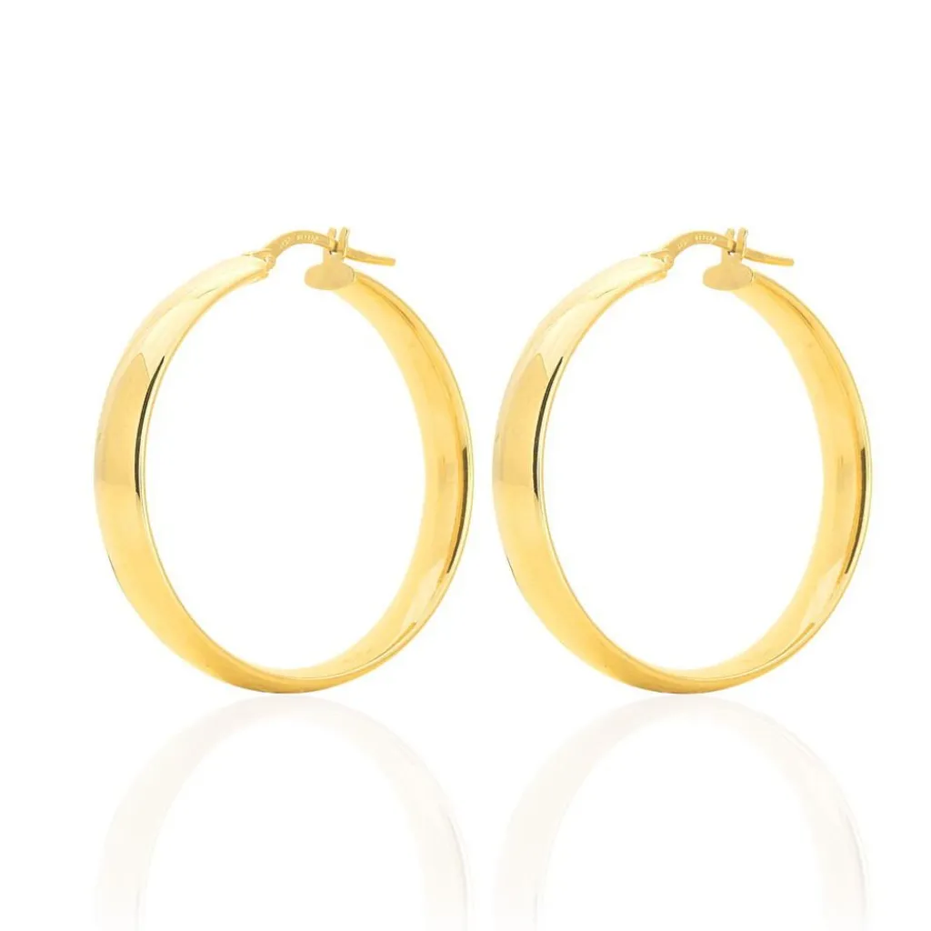 Créoles Or Jaune 375/1000 Fil Demi Jonc Lisse Largeur 6mm Diamètre 30mm