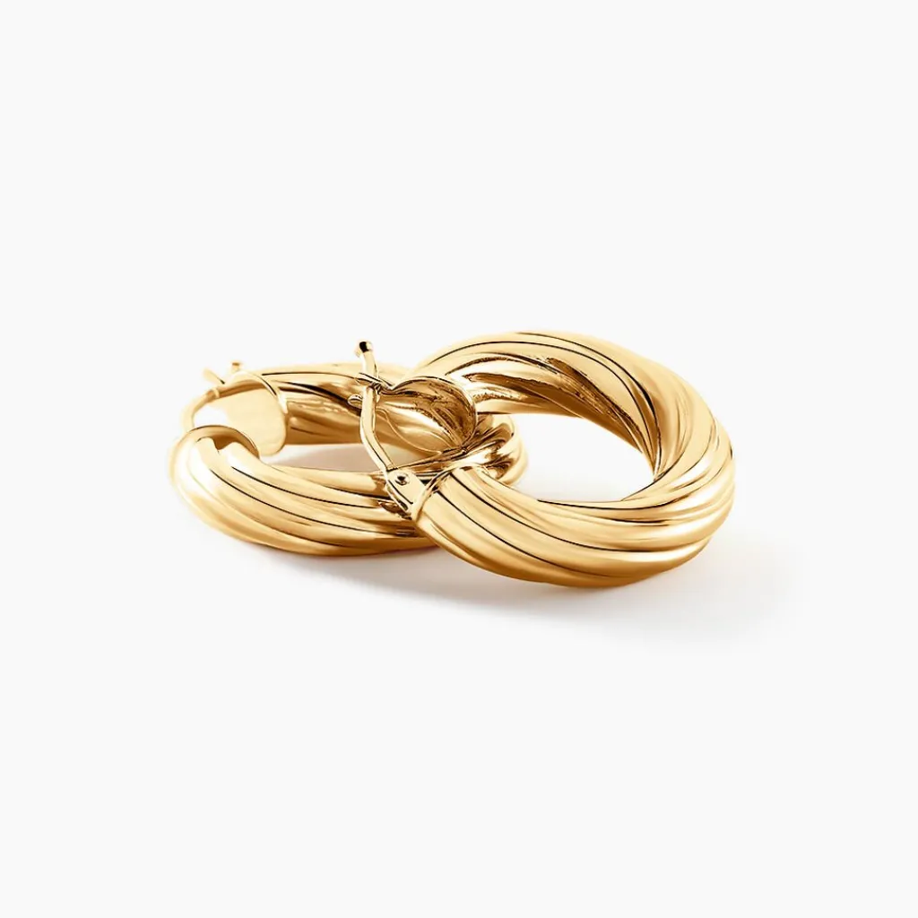 Créoles Or Jaune 375/1000 Fil Rond Torsade Diamètre 10mm