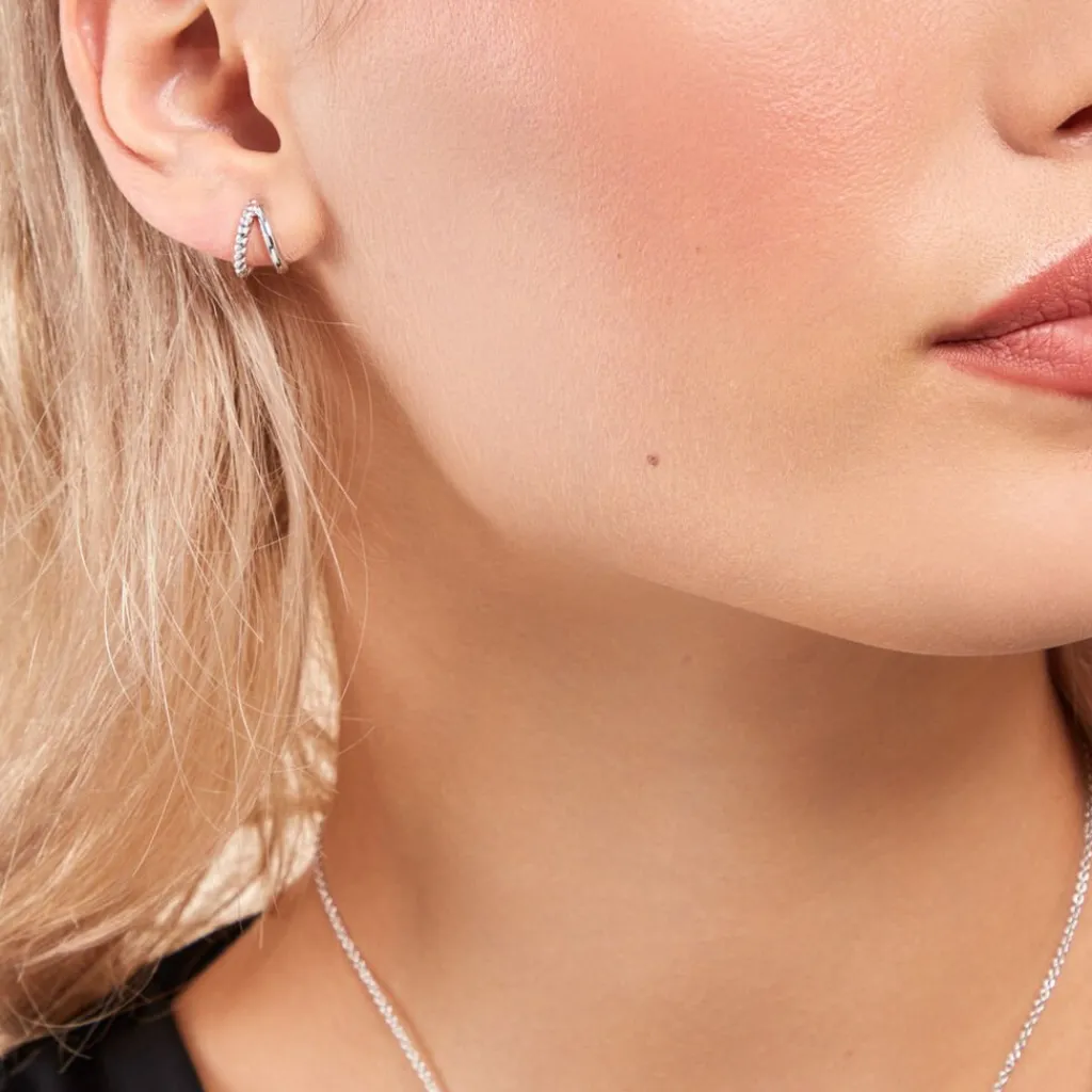 Créoles Argent Blanc 925/1000 Double Rang Lisse Et Torsadé Diamètre 7mm