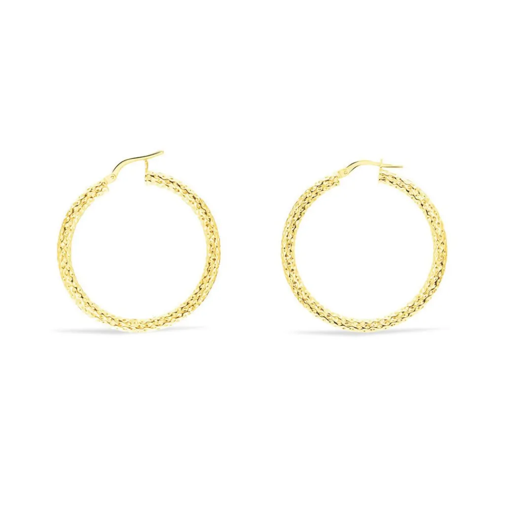 Créoles Or Jaune 375/1000 Fil Rond Martele Largeur 3mm Diamètre 30mm
