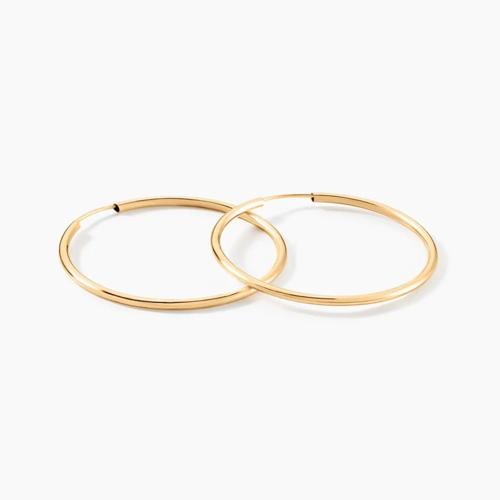 Créoles Or Jaune 375/1000 Fil Flexible Lisse Largeur 1.6mm Diamètre 35mm
