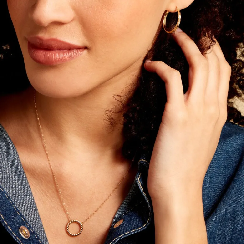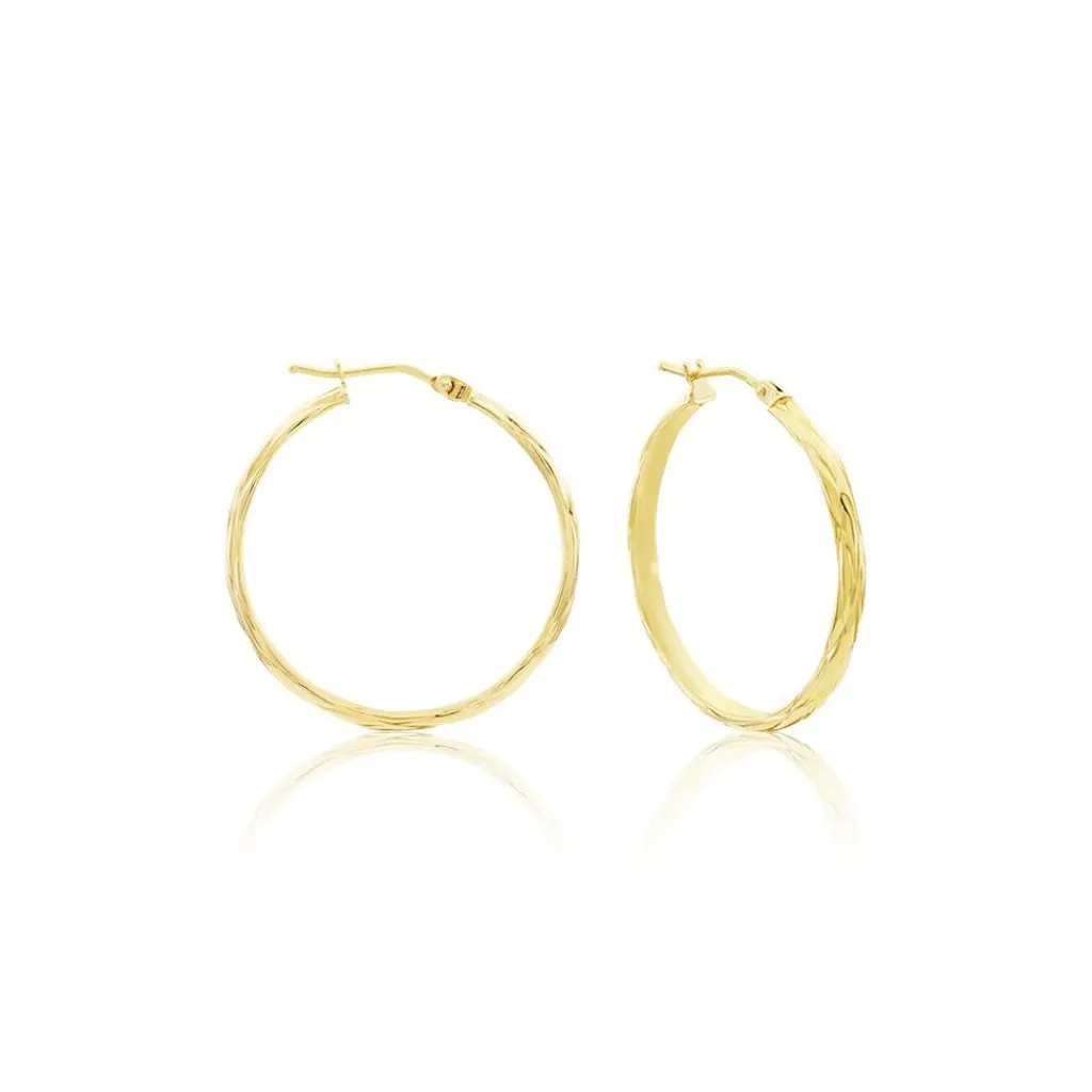 Créoles Or Jaune 375/1000 Demi Jonc Effet Diamanté épaisseur 2.5mm Diamètre 20mm