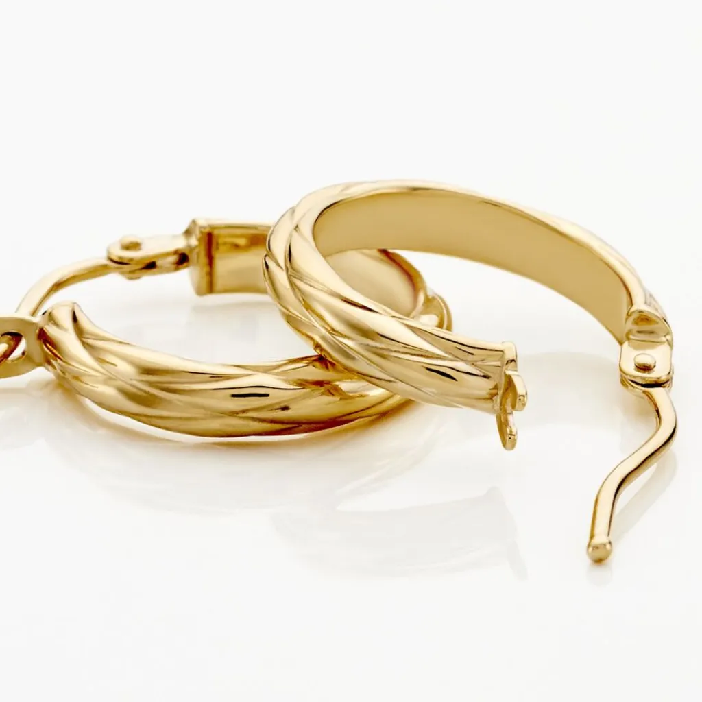 Créoles Or Jaune 375/1000 Demi Jonc Effet Diamanté épaisseur 2.5mm Diamètre 10mm