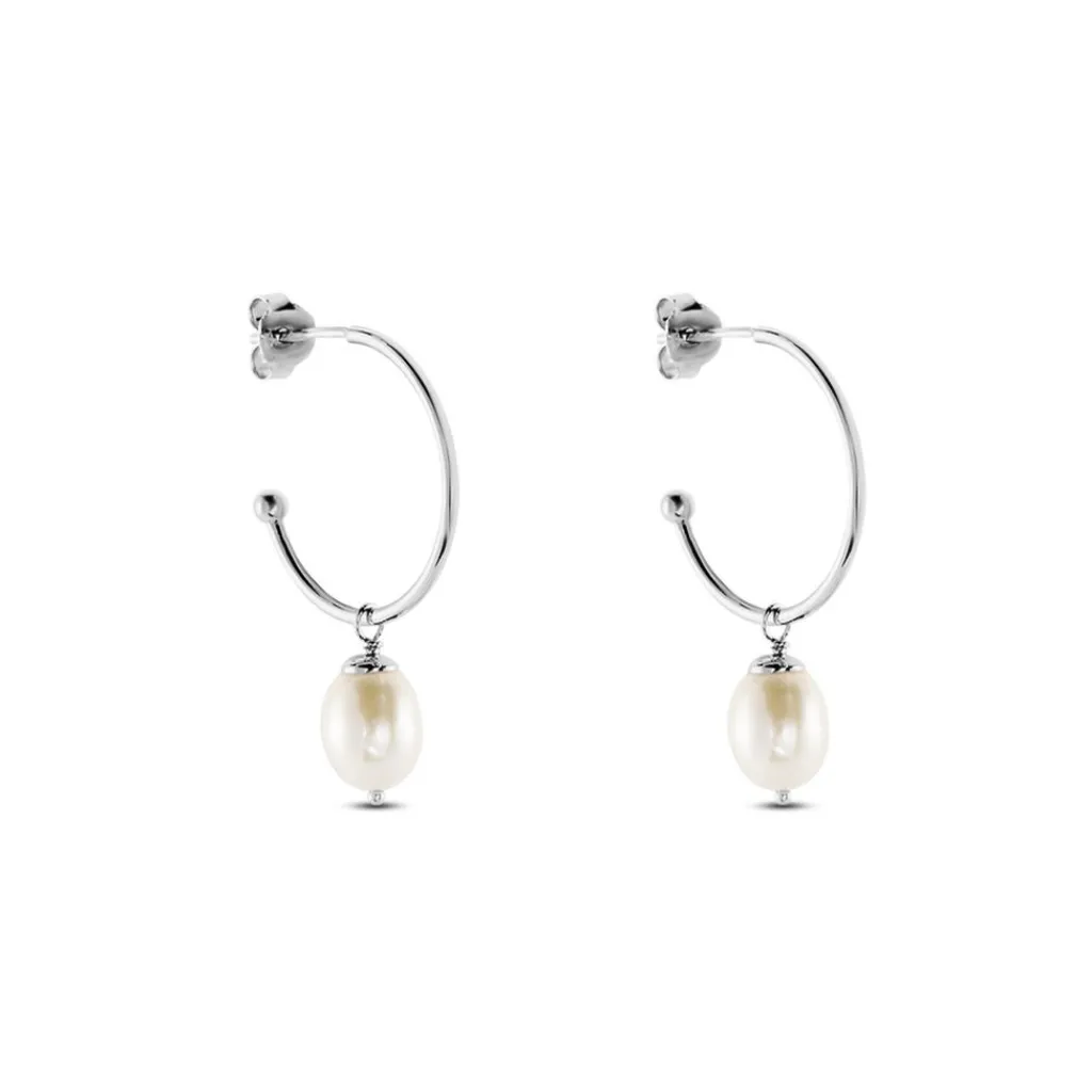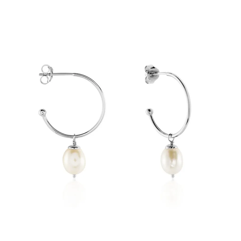 Creoles Ouvertes Argent Blanc 925/1000 Perle De Culture 7-7.5mm