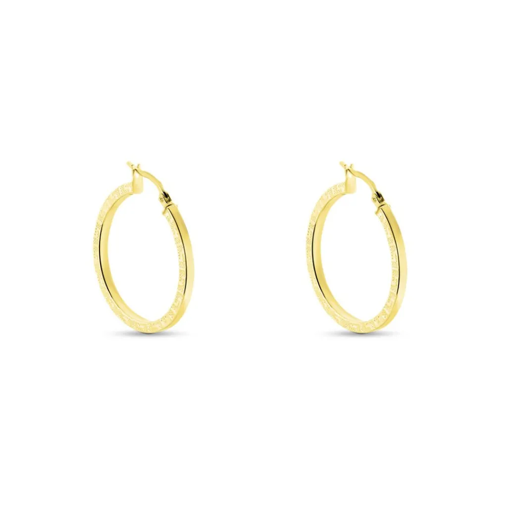Créoles Or Jaune 375/1000 Fil Carré Grec Largeur 2mm Diamètre 20mm