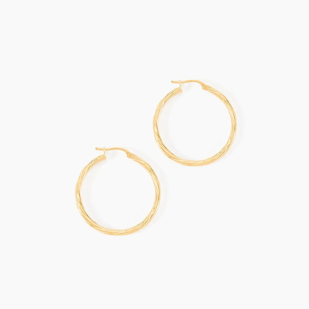 Créoles Or Jaune 375/1000 Fil Rond Torsadé Largeur 2mm Diamètre 25mm