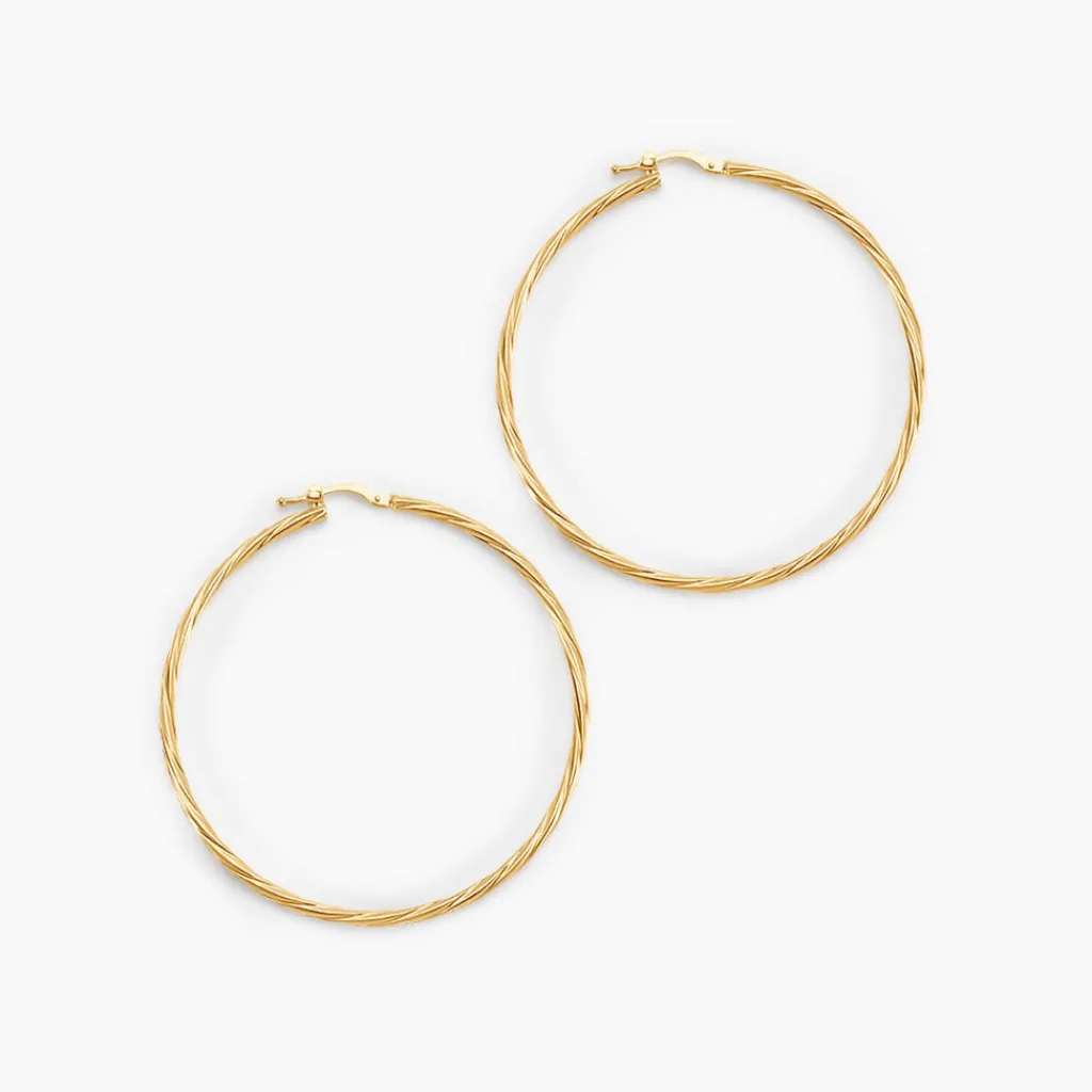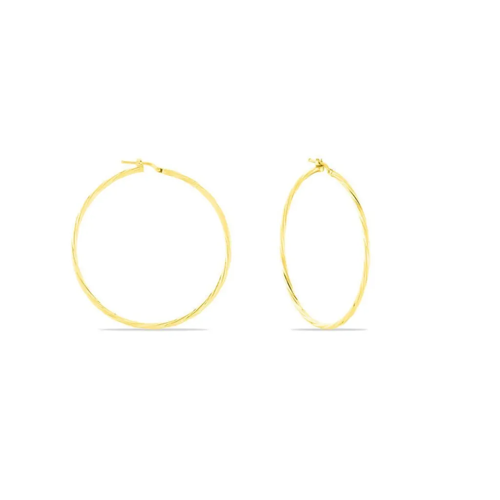 Créoles Or Jaune 375/1000 Fil Rond Torsadé Largeur 2mm Diamètre 50mm