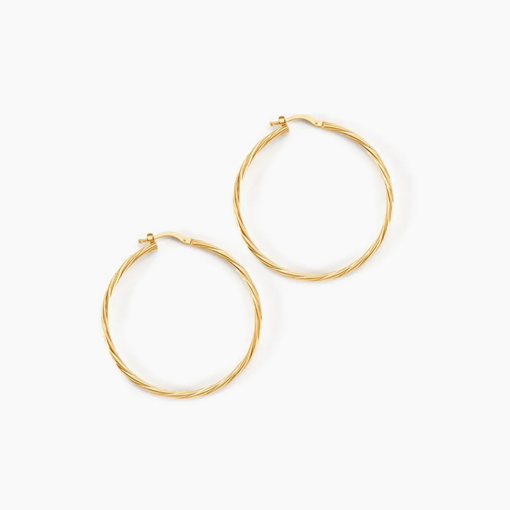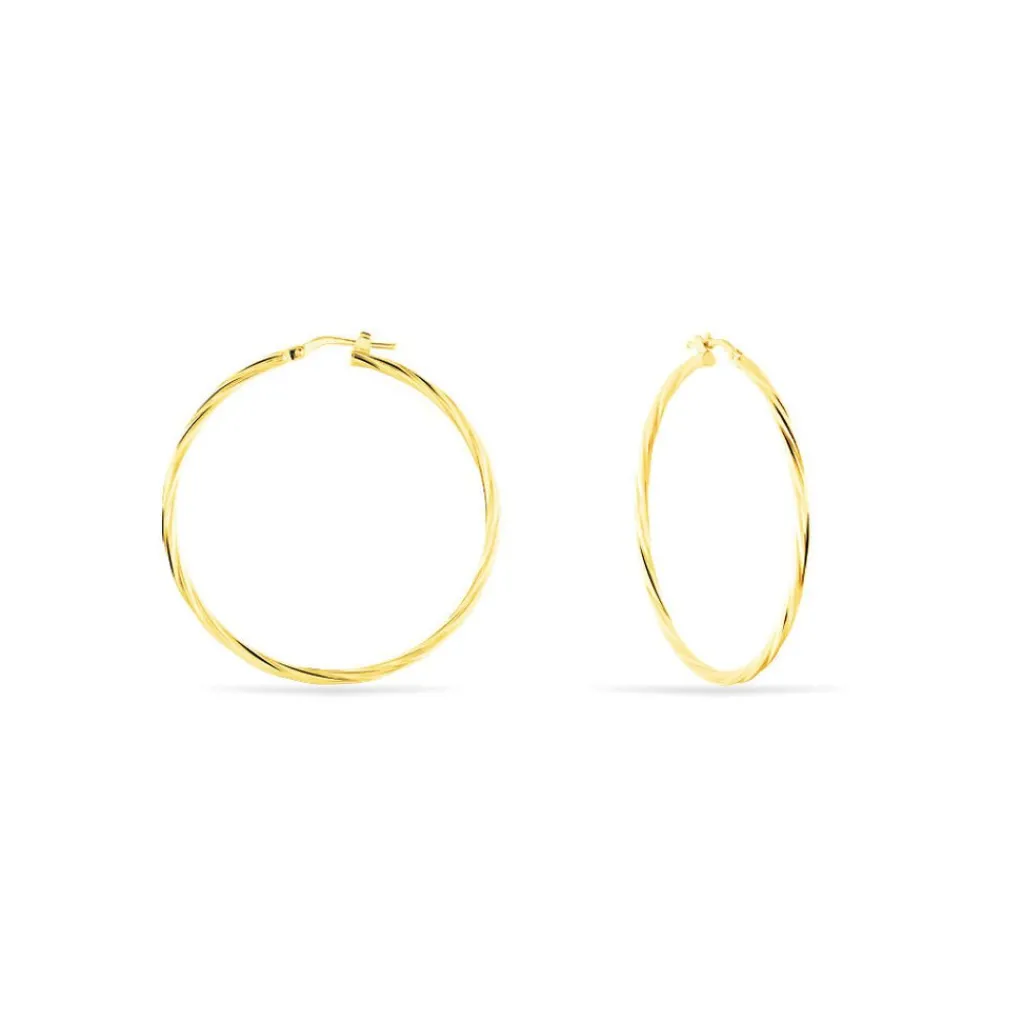 Créoles Or Jaune 375/1000 Fil Rond Torsadé Largeur 2mm Diamètre 40mm