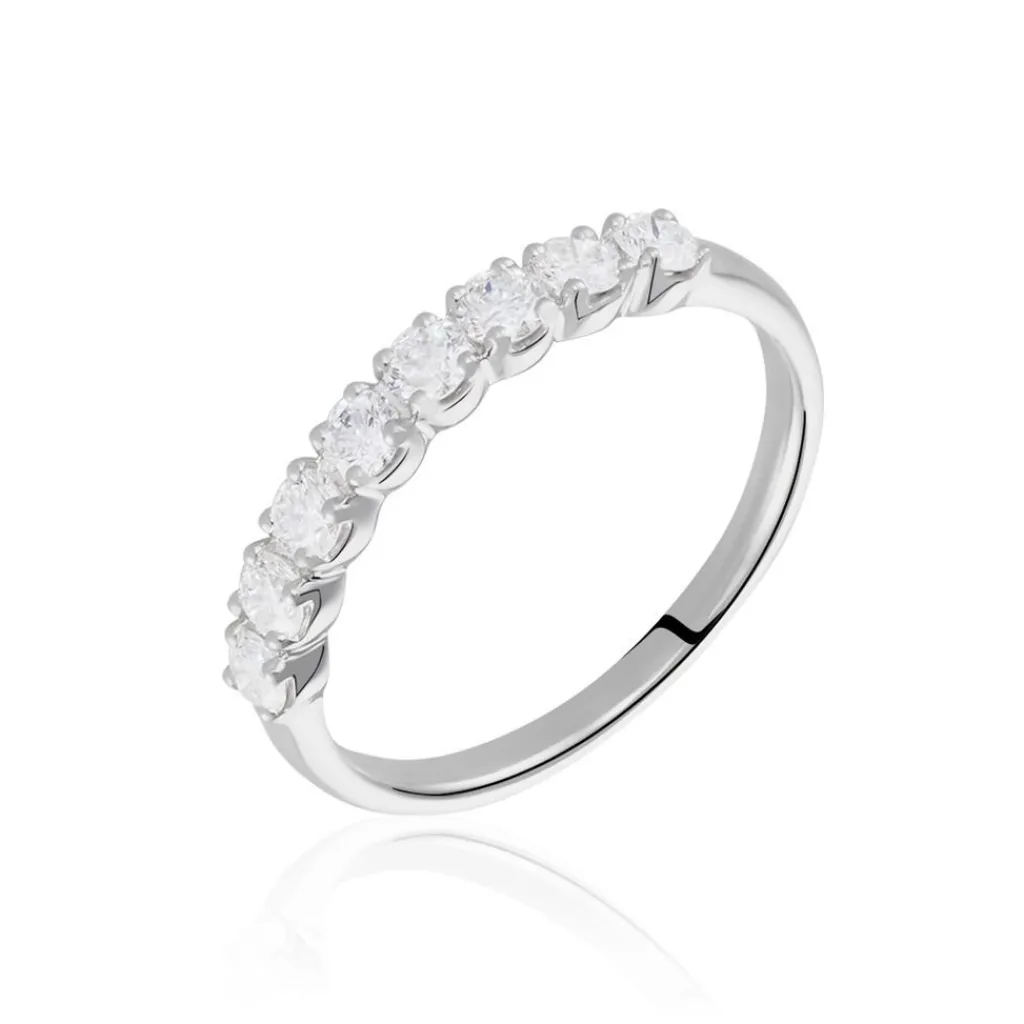 Demi-alliance Or Blanc 750/1000 Diamants Synthétique 0.59cts Sertis Griffes