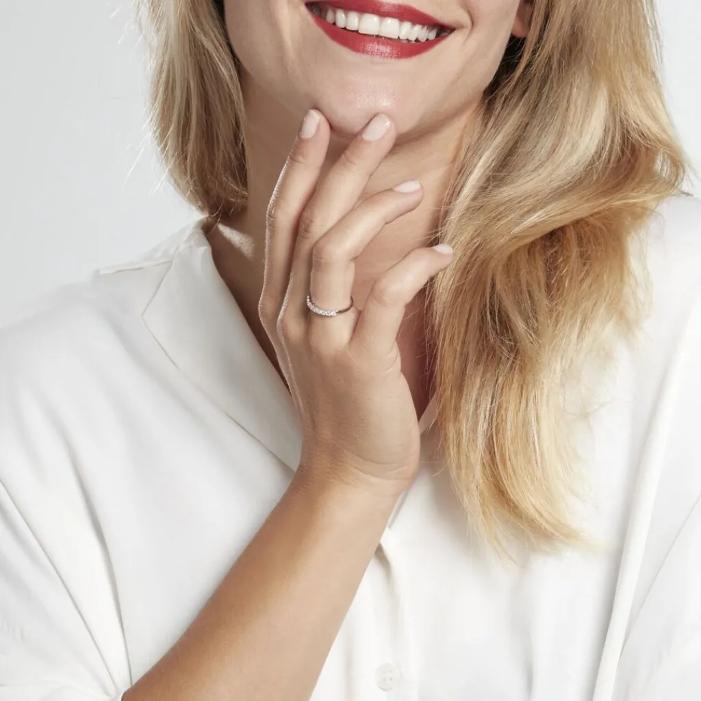 Demi-alliance Or Blanc 750/1000 Diamants Synthétique 0.40cts Sertis Griffes