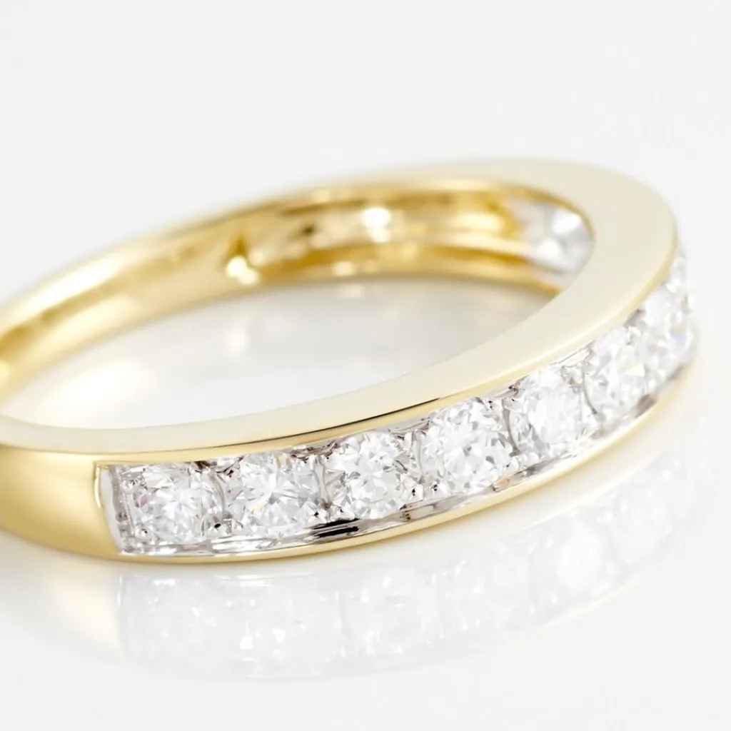 Demi-alliance Or Jaune 750/1000 Diamants Synthétique 0.70cts Sertis Grain