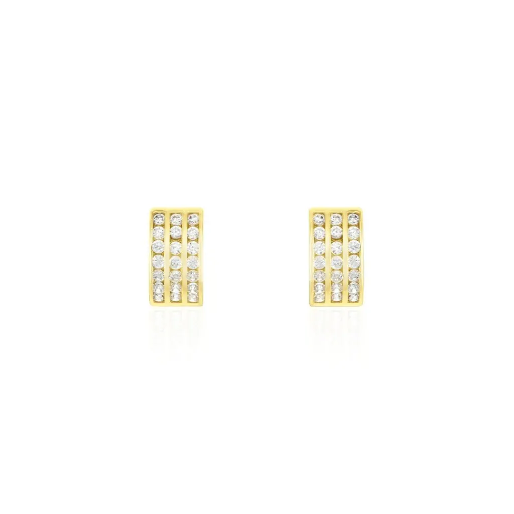Demi Créoles Or Jaune 375/1000 Oxyde De Zirconium Serti Pavage