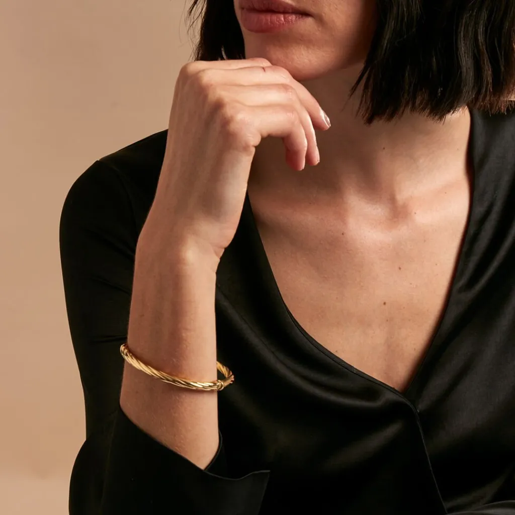 Bracelet Jonc Or Jaune 375/1000 Fil Torsadé Diamètre 60*52mm