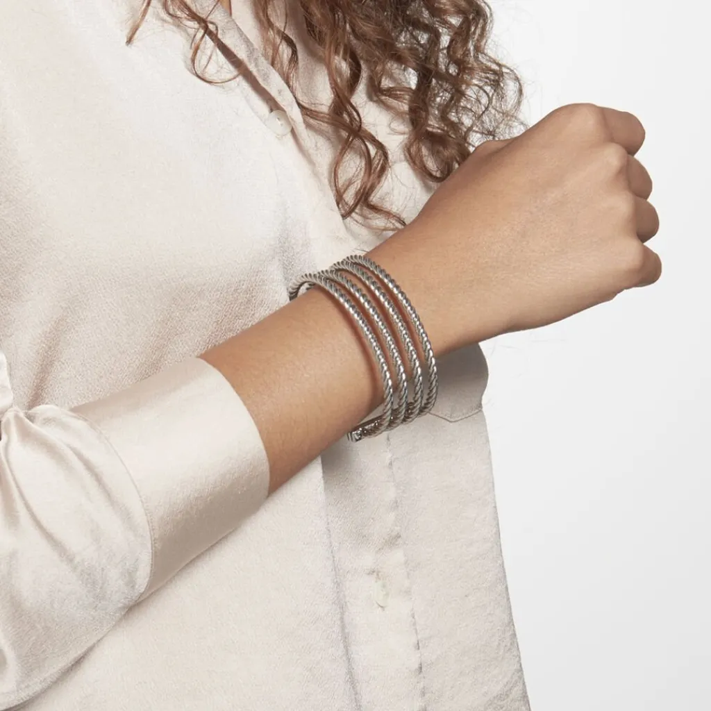 Jonc Ouvert Acier Blanc Multirang Torsades Diametre 56mm