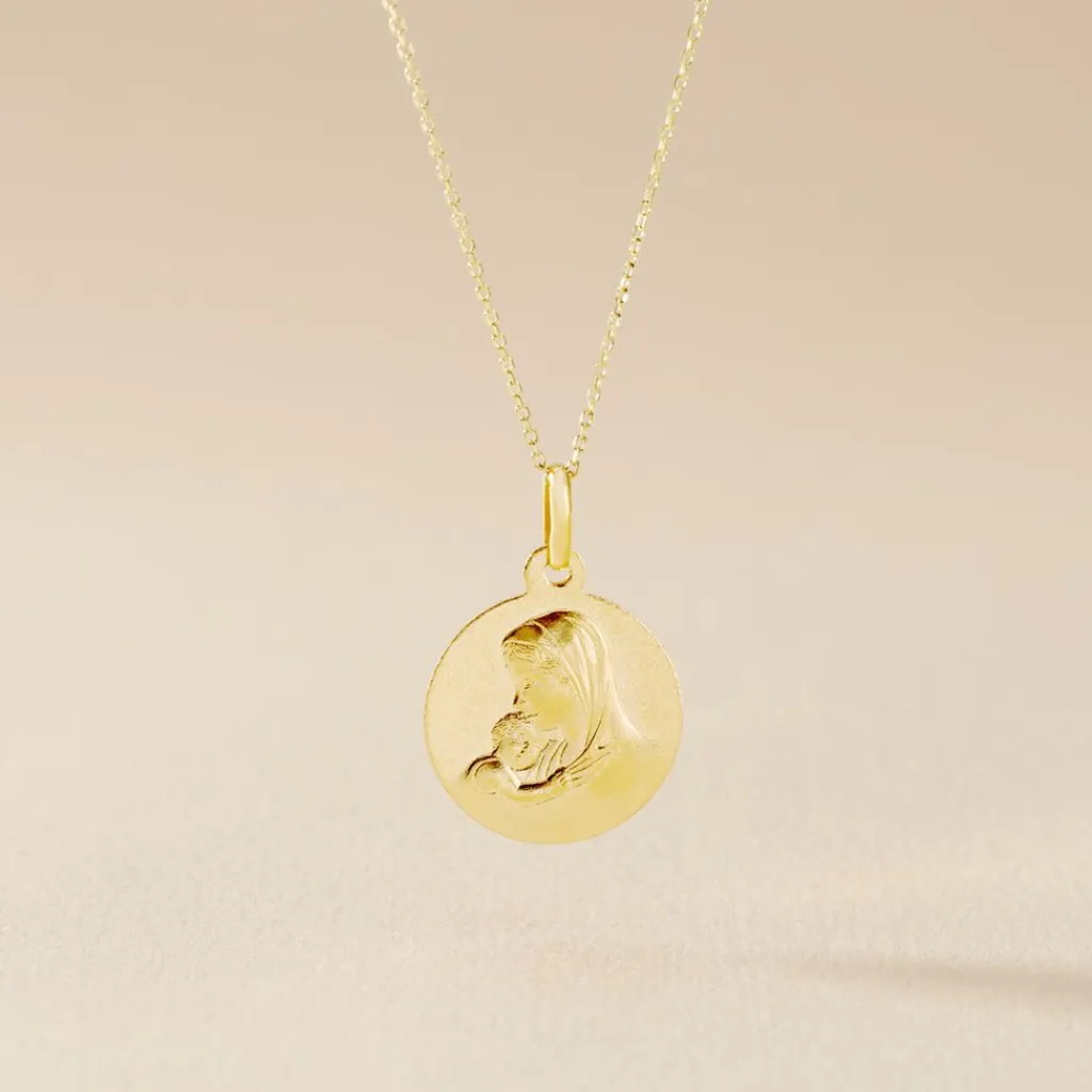 Medaille Or Jaune 750/1000 Vierge A L’enfant Diametre 16mm