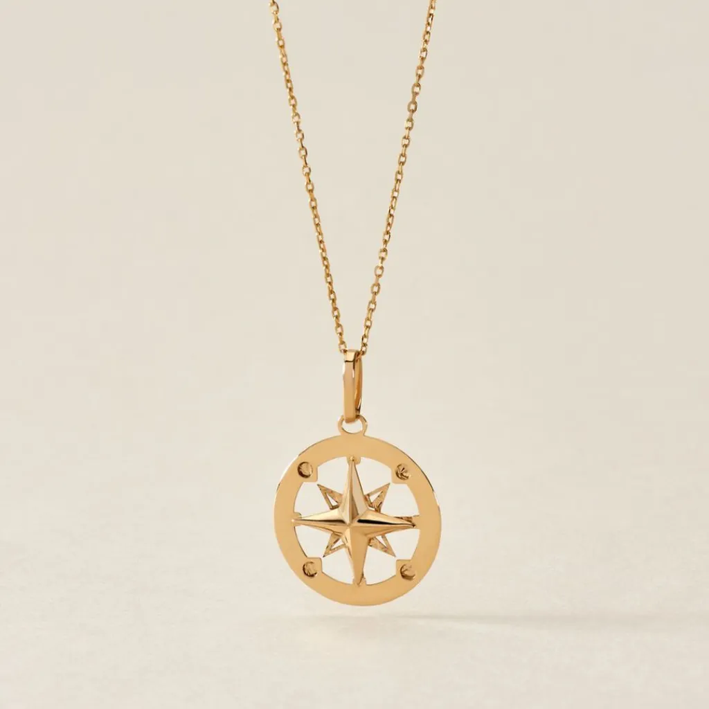 Pendentif Or Jaune 750/1000 Rose Des Vents Diamètre 1.65cm