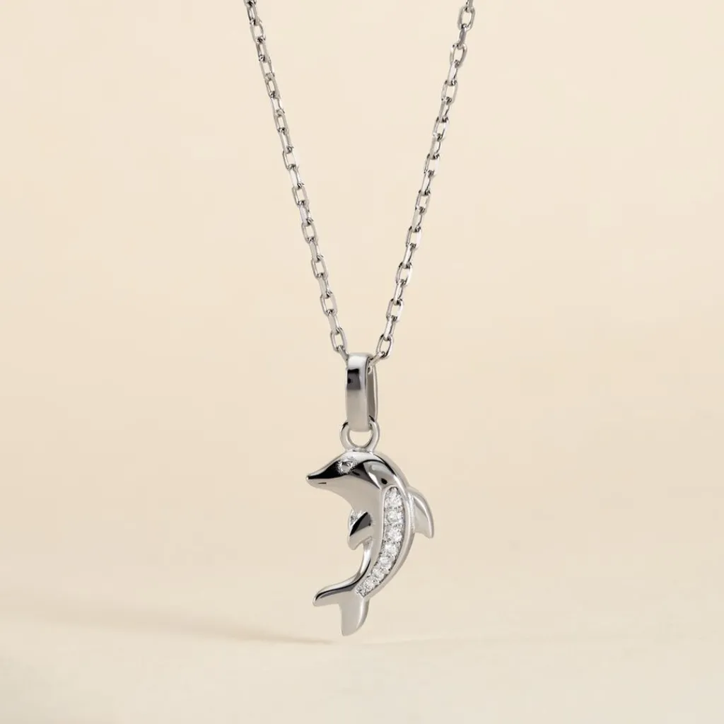 Pendentif Argent Blanc 925/1000 Dauphin Pavage Oxydes De Zirconium