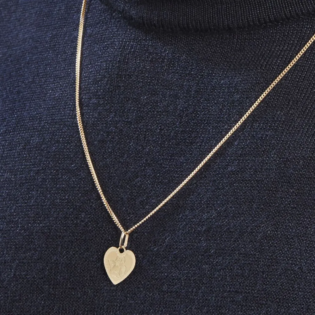 Pendentif Or Jaune 375/1000 Coeur Ciselee Motif Ange Penseur