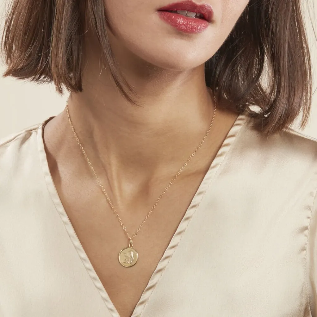 Medaille Or Jaune 375/1000 Rond Ange Mat