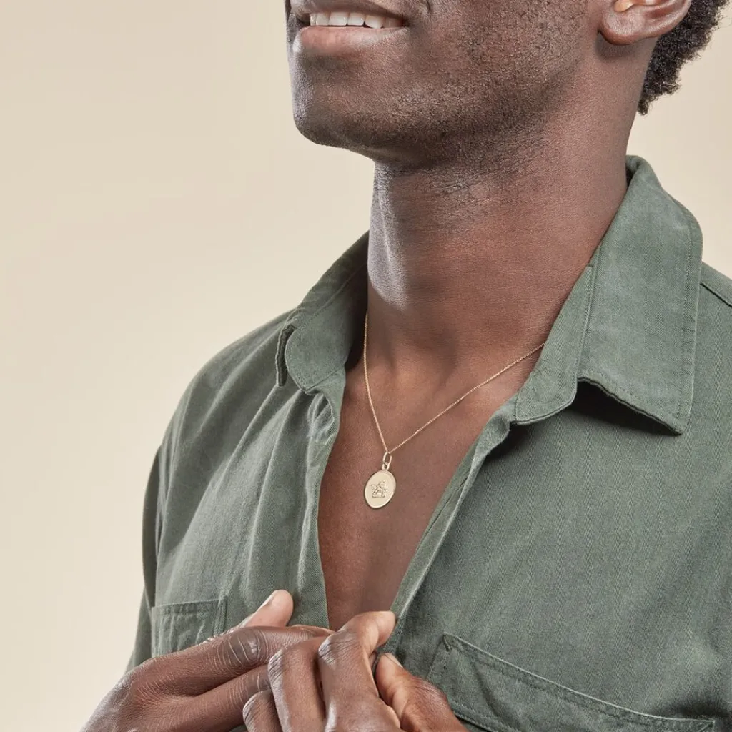 Medaille Or Jaune 375/1000 Ronde Motif Ange Penseur 17mm
