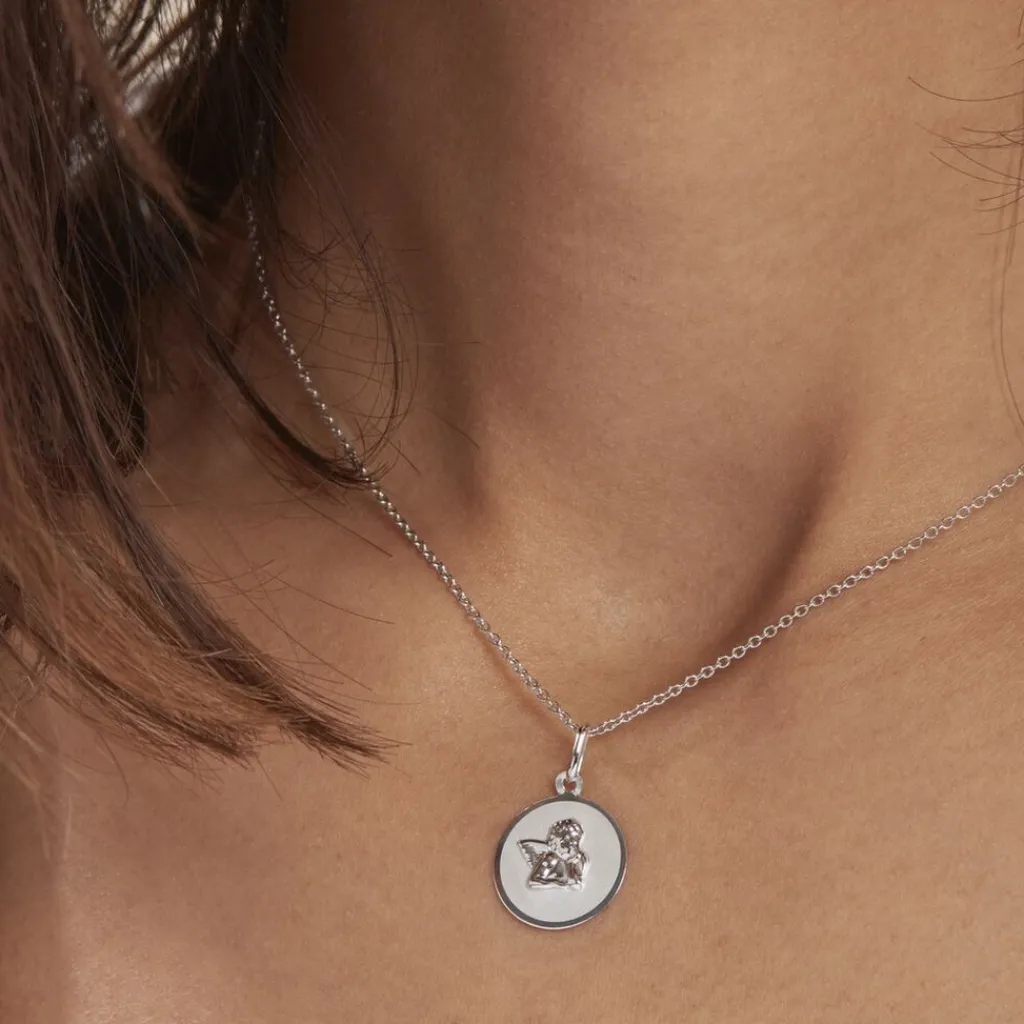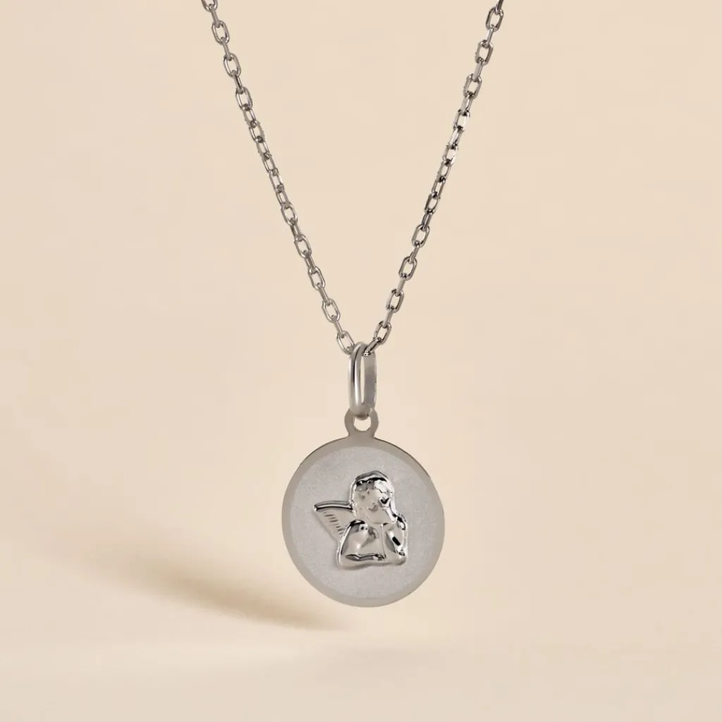 Medaille Or Blanc 375/1000 Ronde Satinee Ange Pm