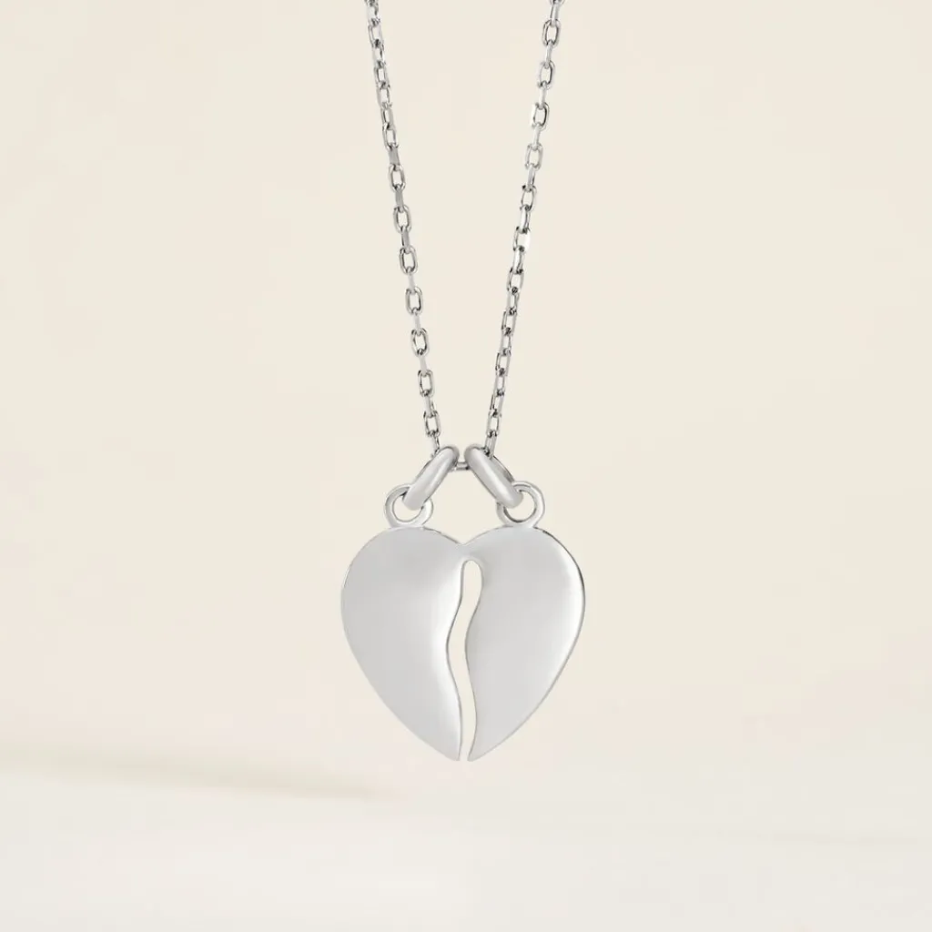 Pendentif Argent Blanc 925/1000 Coeur Sécable Amitié / Amour Gm